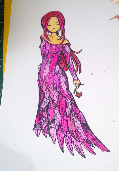 fui jugando con los colores, rebajando con agua o sin diluir para formar varios tonos de rosas y lilas, así quedó, no me digáis que no ha quedado chula mi niña?