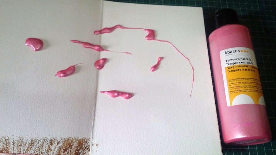 de lo primero que eché mano fue de un bote de témpera rosa nacarado, le puse un chorro directamente en la página