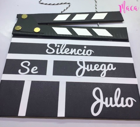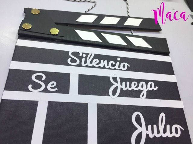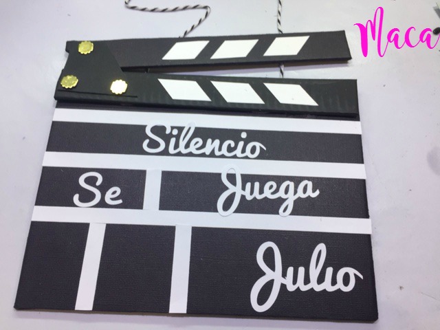 Se trata de un cartel para la puerta de su habitacion con forma de claqueta de cine