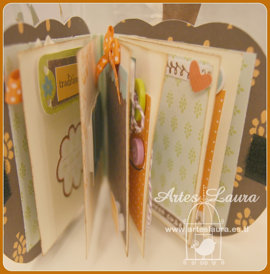 Para este blog hop he realizado un mini album con forma de calabaza y con esta tematica, aunque queda ponerle las fotografias y es que este fin de semana será la recogida....