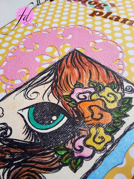 Engalanando mi blog planner tenemos a Camila, un hermoso sellito de Dilo en Español (dale clic para ver el sellito), muy resultón y que por si solo resalta en nuestra tapa dura. Tiene una blonda rosada, una viñeta azul y un banderín verde detrás a modo de contraste.