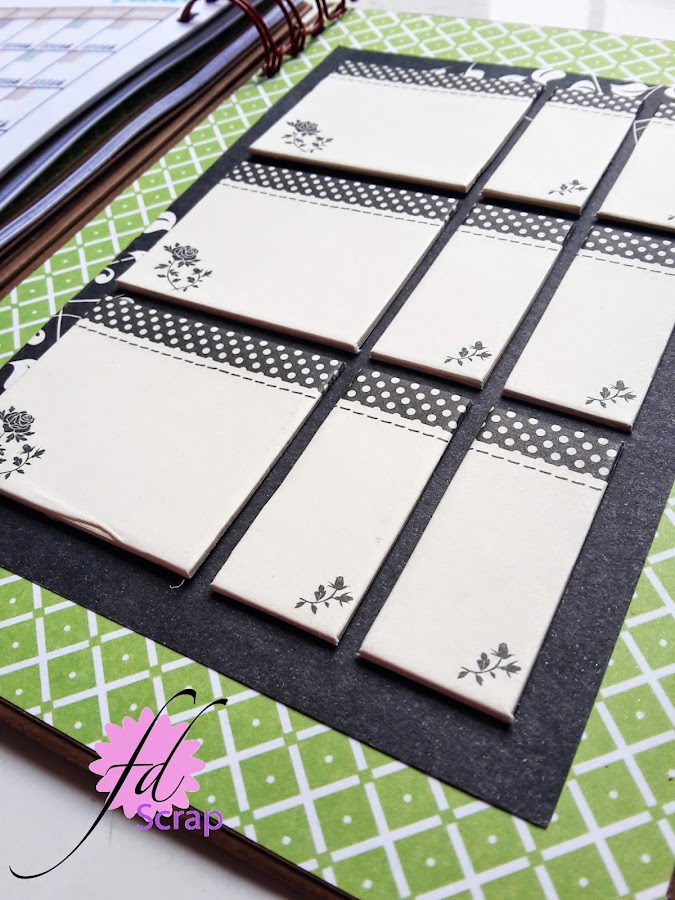 Finalmente para la tapa posterior la decoré con papel scrap verde y le coloqué post it que tenía de una agenda antigua.
