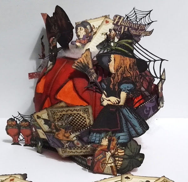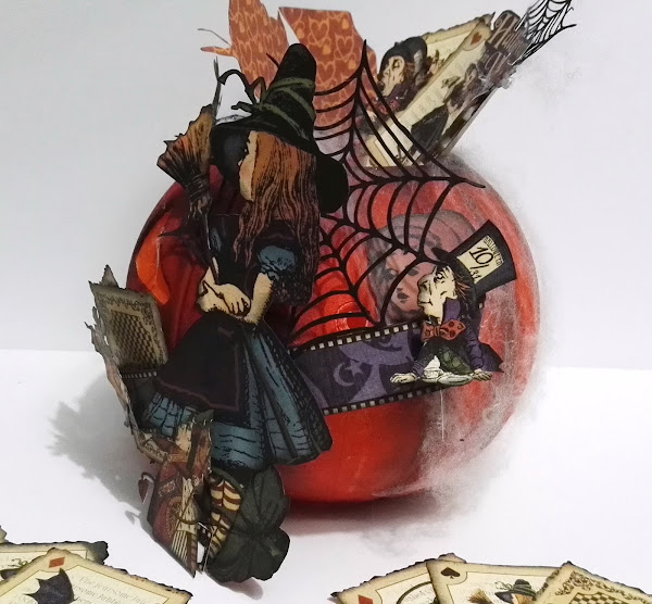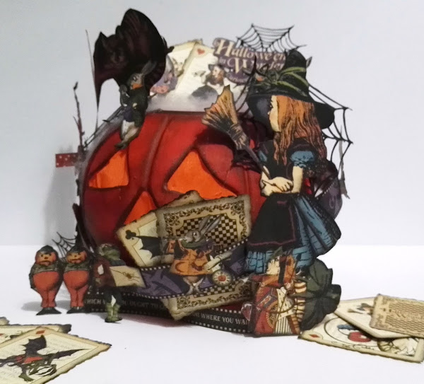 Para la ocasión, he preparado una calabaza.... pero tambien estaba enamorada de los papeles de G45 halloween in Wonderland....así que he intentado mezclar los dos elementos, y aunque no es exactamente lo que me habia montado en mi cabecita, creo que no me ha quedado tan mal.... os enseño un poquito como he hecho este proyecto: