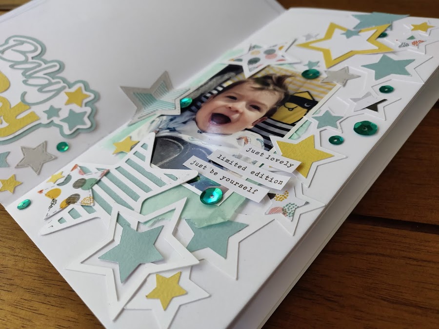 Como veis, he tirado este mes de Cameo y de troqueles de estrellas jejeje Unas lentejuelas que tenía guardadas de algún kit de Simon Says Stamp (ahí es nada...) y unas pegatinas con alguna frasecilla.