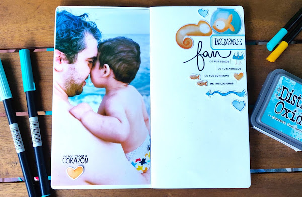 Tenía muchísimas ganas de hacer una página de mi midori con una foto bien grande y que mejor que esta foto tan bonita que hice este verano de mis dos hombres de la casa :)