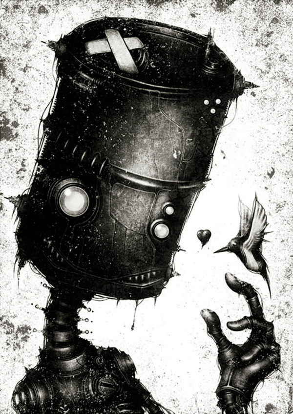 Yo he elegido una ilustración de un robot "TORI TO KIKAI" que me gusta y que no es de lo más oscuro que puede tener, jejeje