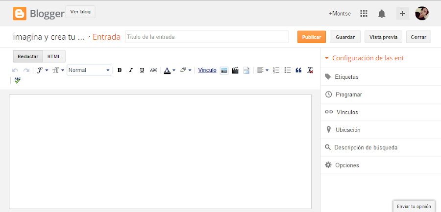 En la pantalla de crear una nueva entrada veremos que nos sale la barra de formato de texto donde podremos cambiar la fuente, el tamaño, negrita, insertar enlaces e imágenes, etc? Es bastante similar a los que podemos ver en programas como Word.
