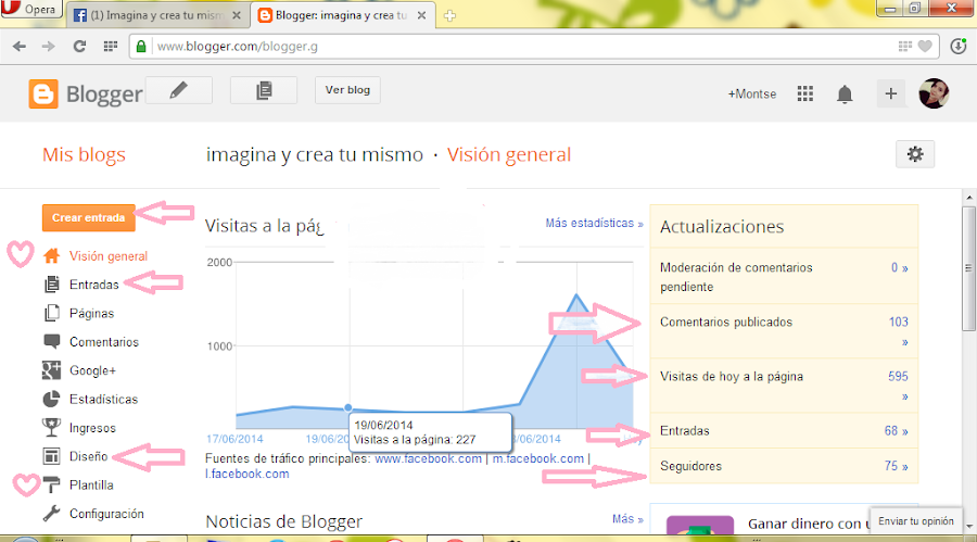 Ahora vamos a conocer un poquito todo lo que hay en blogger las herramientas que hay que conocer para sacarle el maximo provecho a nuestro blog.