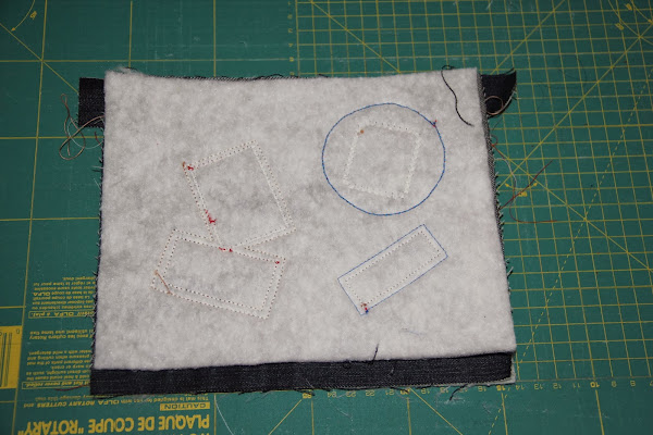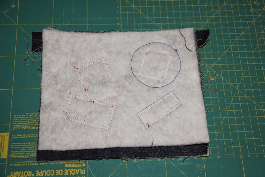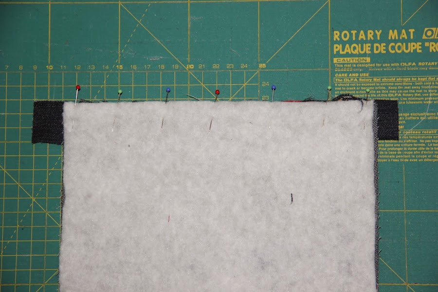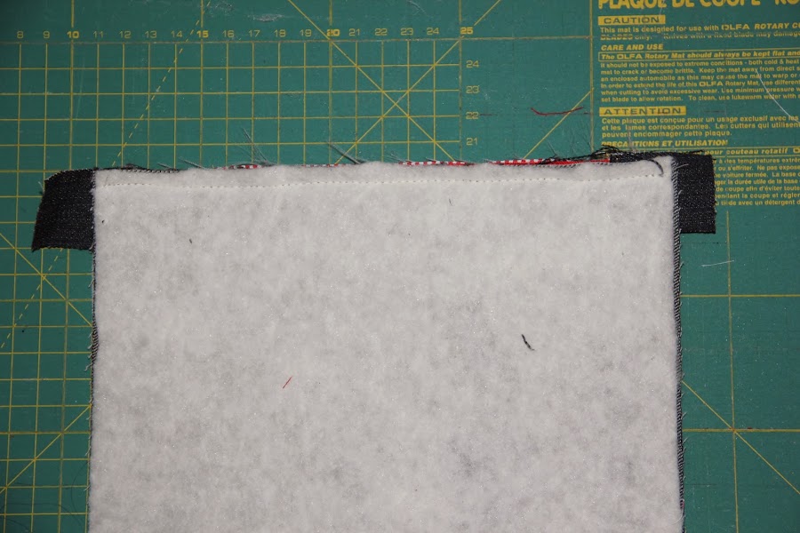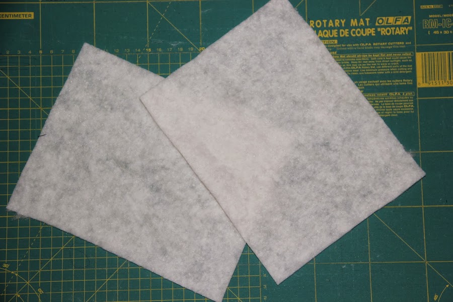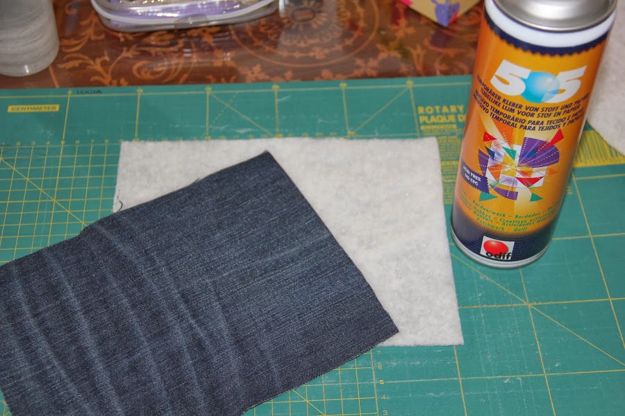Place the batting on the reverse of the rectangle jean fabric. i used a sticker spray to stick the batting to the fabric