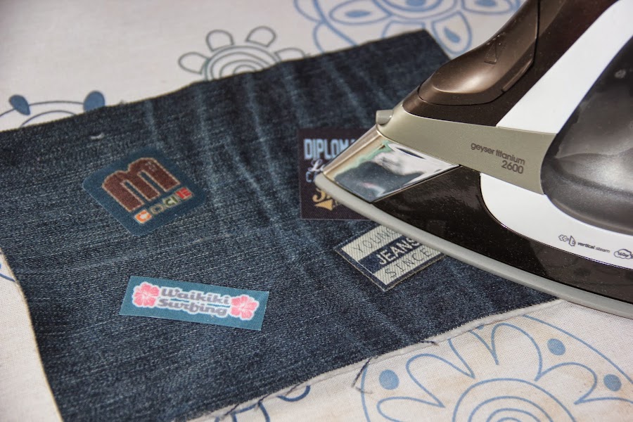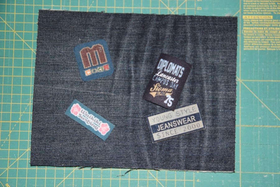 En uno de los rectángulos, colocar los parches y planchar para que se peguen a la tela.
