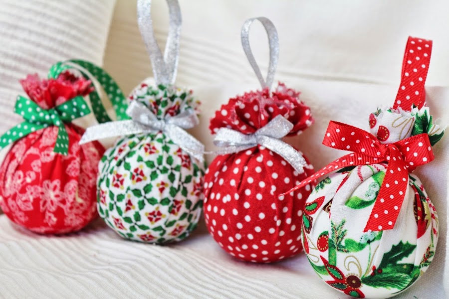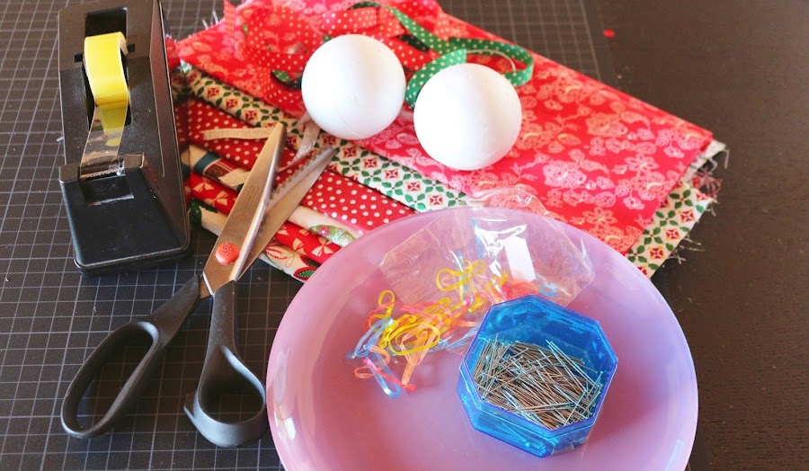 Me he ayudado de un plato para recortar la medida que necesitaba para cubrir estas bolas. Antes de cortar la tela mide el contorno de tu bola y añade un extra para poder anudar la tela por arriba.