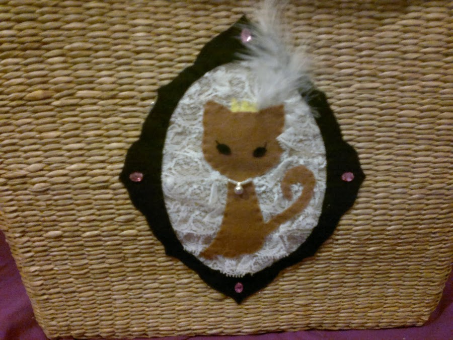 Nuevo capazo de mimbre, esta vez en negro, para el aplique hice una flor grande en tafetan negro y la acompañe con un tocado que me parecio precioso, forrado con bolsillo interior y puntilla.