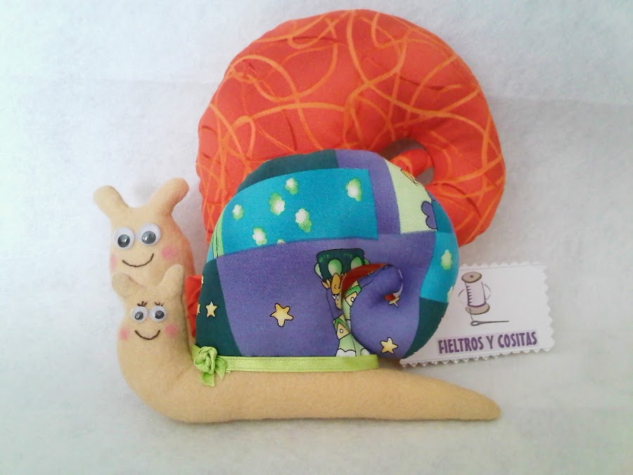 Os muestro los caracoles pequeños que hice para que acompañasen a los grandes en su camino, miden 10 ctrm de alto x 15 ctrm de ancho, os he puesto una foto de los dos tamaños para que compareis,,,que os parecen????