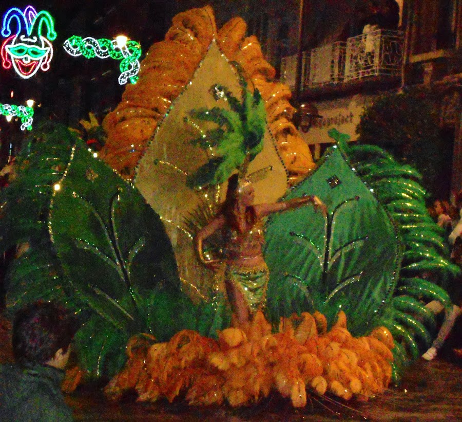 También llevaban unos zancudos con un espectacular traje de pájaro que causaron furor además de los trajes que lleva la comparsa que son un espectáculo y que diseñan y confeccionan ellos mismos.