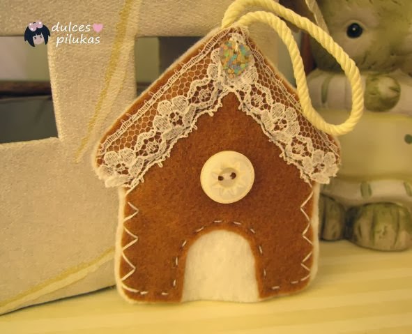 una encantadora casita de pan de jengibre realizada en fieltro.
