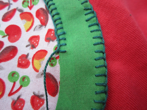 Y seguimos cosiendo el punto festón por el lado interior de la corteza. Cuidado con esta parte porque cuesta un poco más clavar la aguja, ya que hay dos telas superpuestas.