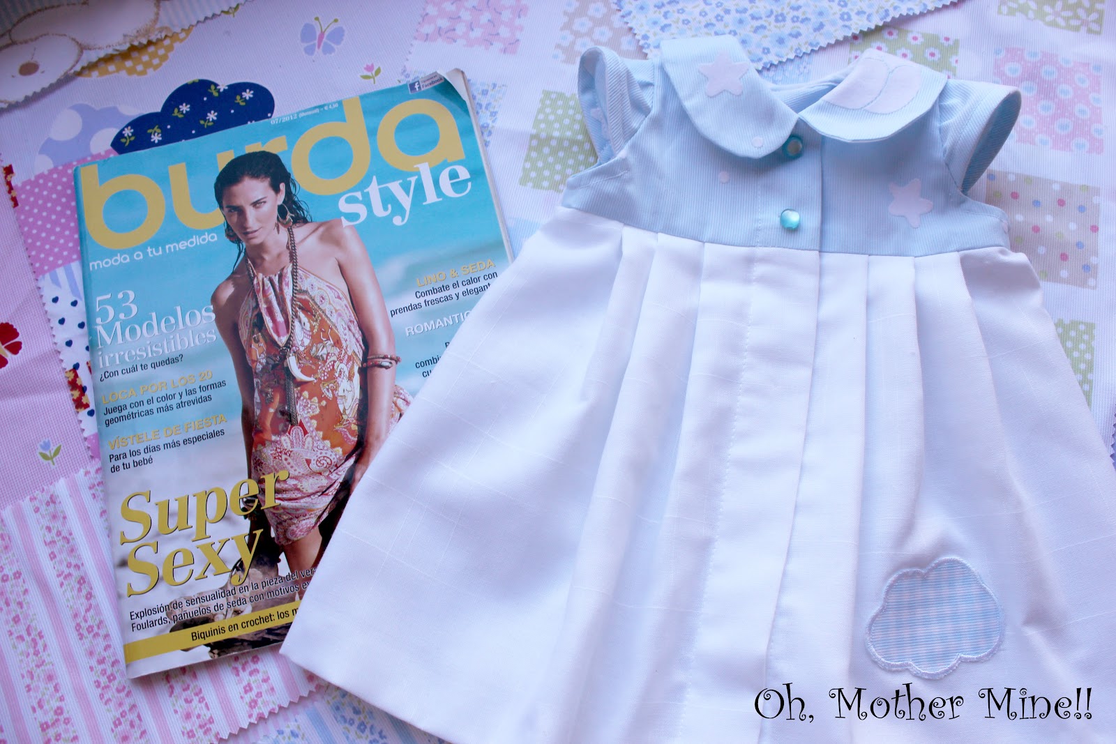 Hola a tod@s, especialmente a las pre-mamás, a las mamás y a las abuelas que se animen a hacer ropita para los más pequeños de la casa. Este es un post muy tierno y lo hemos hecho con mucho cariño porque es un regalo muy especial para mi amiga Paloma y para su hija Paloma Junior... En casa no tenemos bebés, así que hemos utilizado patrones de la revista Burda para hacer el vestidito y ha sido SÚPER FÁCIL.