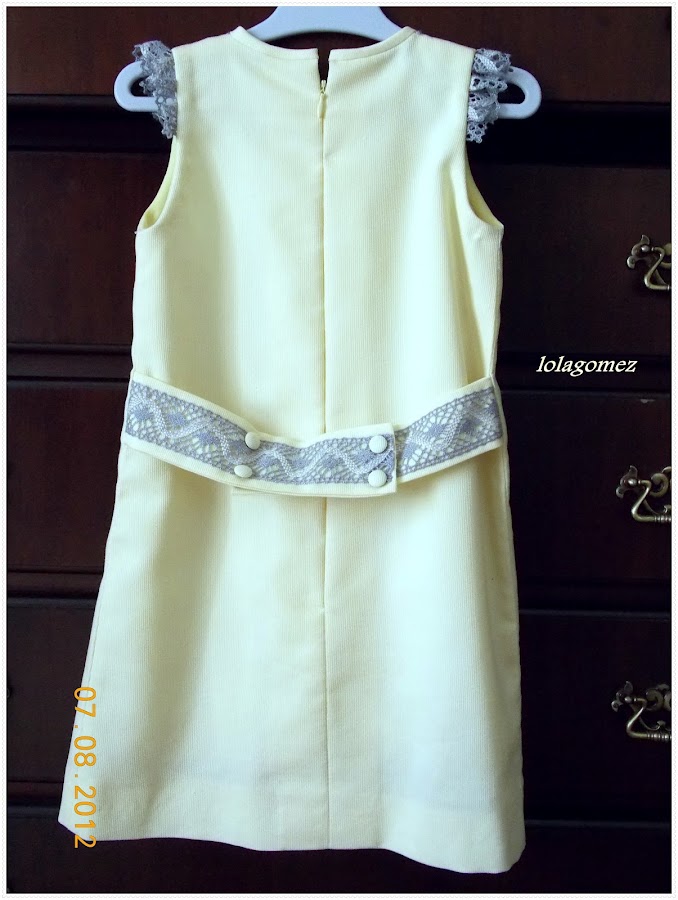 El patrón se lo hice tipo trapecio pero con su entalle en la cintura que mi princesa ya se va haciendo mayor. En la espalda le puse un cinturón con el entredos que le da un detalle muy fino.
