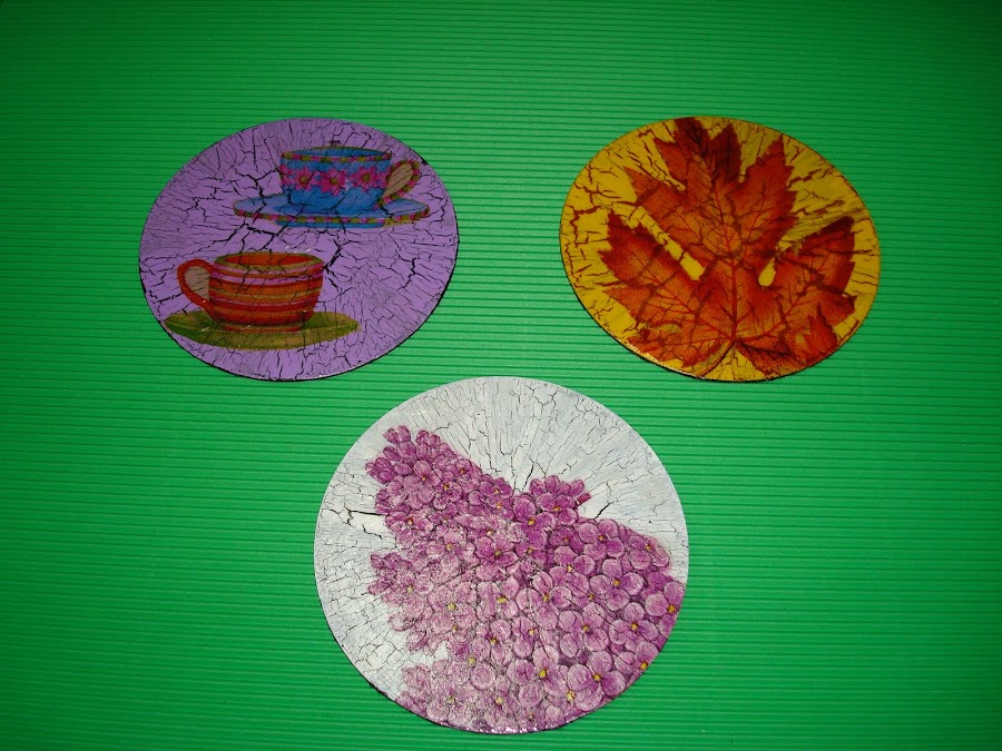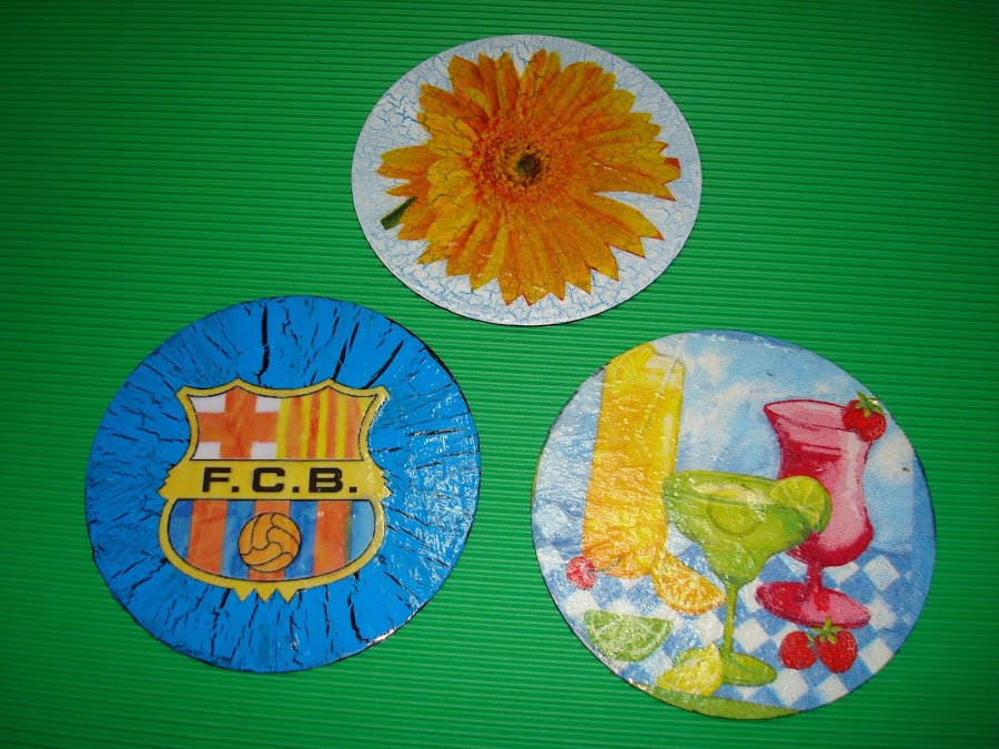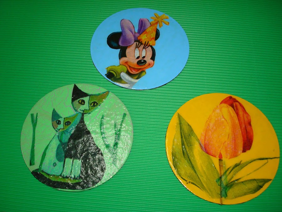 POSAVASOS HECHOS CON CD"S DECORADOS EN DECOUPAGE