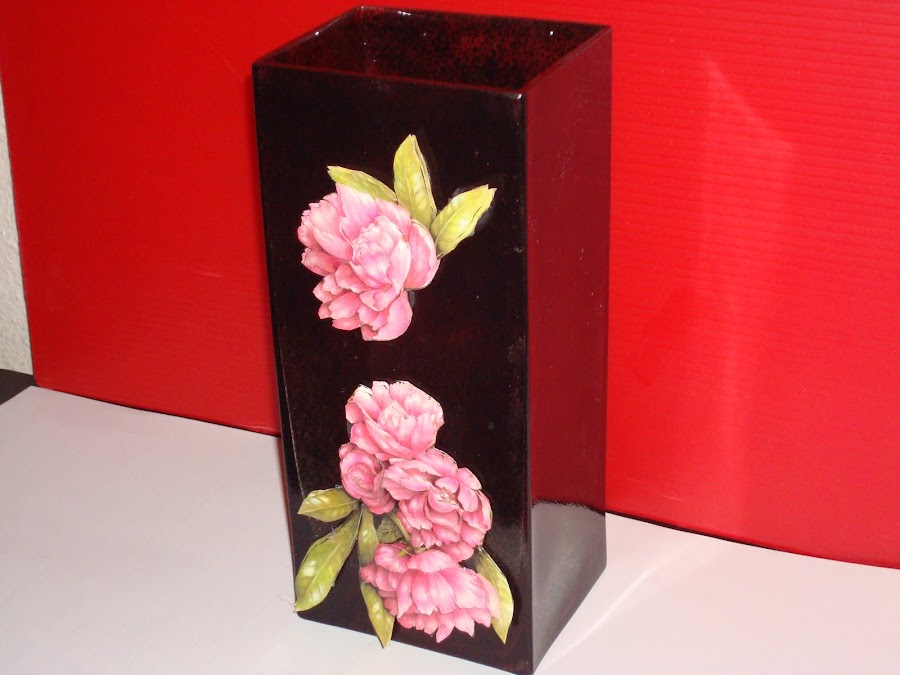 JARRON DE VIDRIO PINTADO Y DECORADO CON FLORES EN 3D