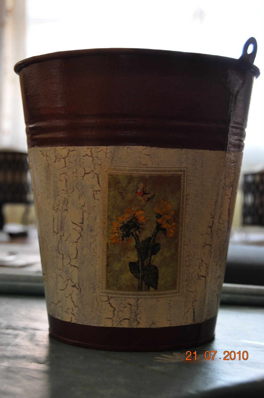 La misma técnica empleé para decorar un cubretiestos que tenía guardado.