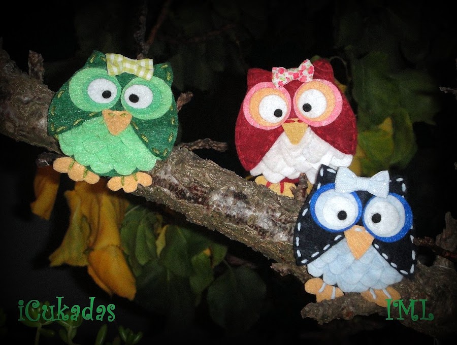 Y para terminar un recuerdo a los 3 primeros buhos que hice, ahí pingados en su rama, que recuerdos!