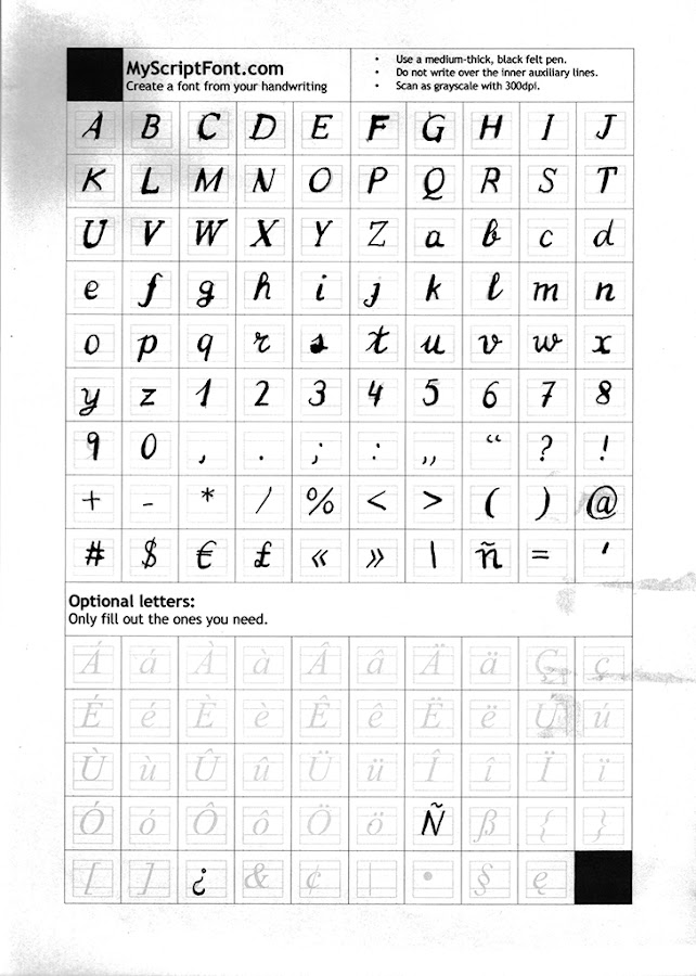 Básicamente debemos imprimir la hoja que nos facilitan en la web y escribir cada letra dentro del cuadrado correspondiente. Es importante no salirse del cuadrado ya que lo que está fuera no aparece. Y además debemos usar una buena tinta (la de pluma es perfecta!)