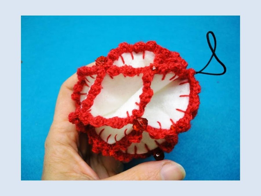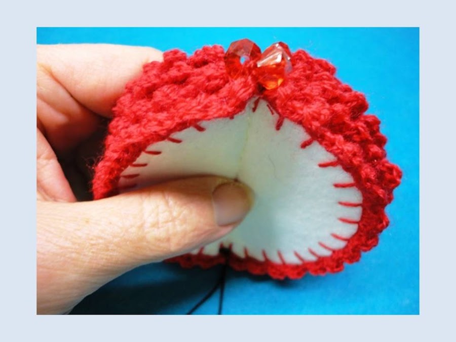 Haced puntadas de refuerzo en un extremo de la bola para que no se abra y decorad con abalorios.