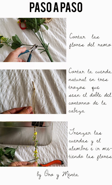Lo bueno de esta corona de flores es que es súper discreta, fácil de hacer y low cost. Los materiales los encontráis en cualquier chino y es una corona muy versátil que sirve a cualquier cabeza.