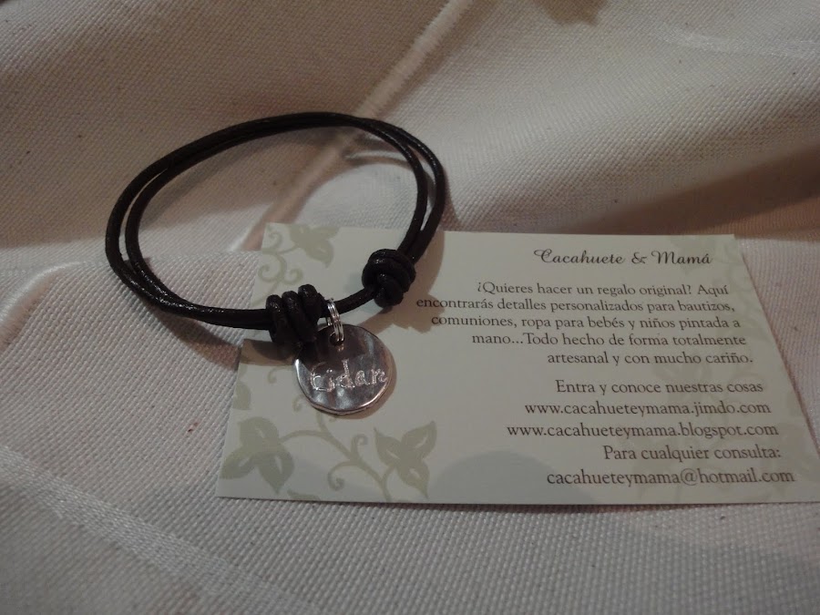 Es muy muy cómoda, y muy sencillita. Se abre y cierra con los nudos corredizos. Está hecha con una medalla de15mm, bañanda en plata y cuero de 2,5 mm.