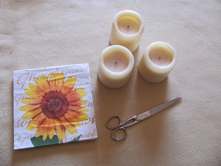 3.- CON LAS PIEZAS CORTADAS (DE UNA SERVILLETA ALCANZO PARA 3 VELAS), EMPEZAREMOS A COLOCAR EL PAPEL ALREDEDOR DE LA VELA. ESTO LO HAREMOS CON AYUDA DE LA PLANCHA, LA CUAL PONDREMOS A TEMPERATURA MEDIA Y SIN VAPOR. CON MUCHO CUIDADO IREMOS PASANDO LA PLANCHA POR SECCIONES DE LA VELA. EMPEZAREMOS A NOTAR QUE LA CERA SE DERRITE UN POCO Y TRANSPASA EL PAPEL AL EXTERIOR, ESTO DARA EL TOQUE BRILLANTE Y PROTECTOR AL PAPEL.