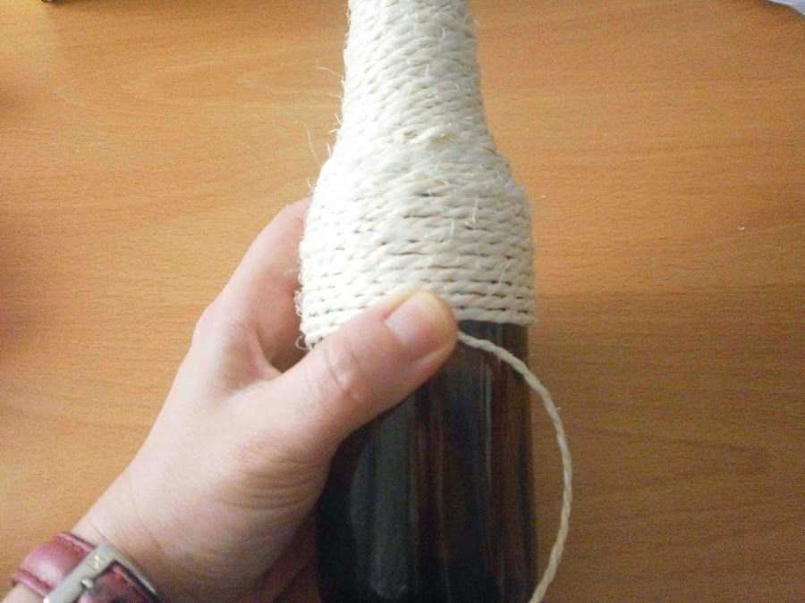 Rodeé las botellas con cuerda, poniendo al principio y al final silicona.