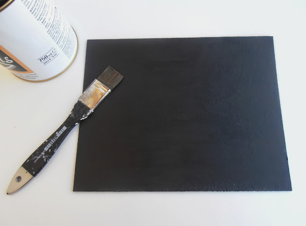 El cartón que he pintado con pintura de pizarra, por la parte trasera se ha ensuciado un poco...