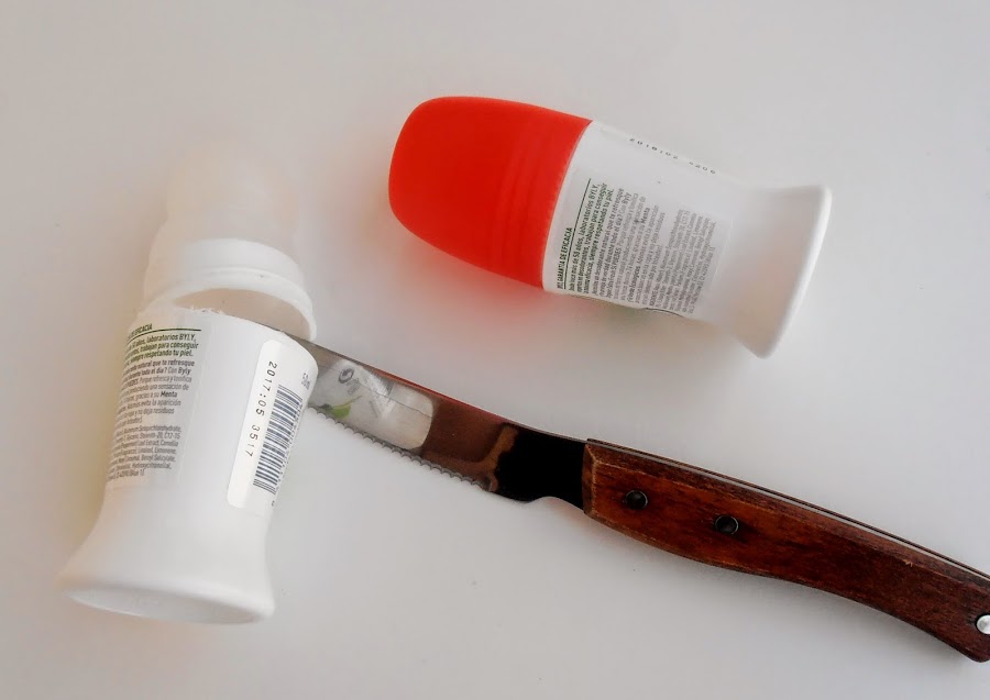 Como también sabéis, reciclo los desodorantes de roll-on. Cojo dos de mi stock.