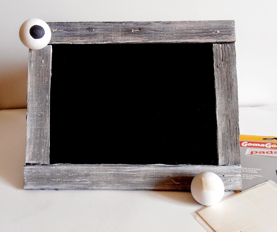 Como quiero darle un toque simpático a la pizarra, con adhesivo de doble cara