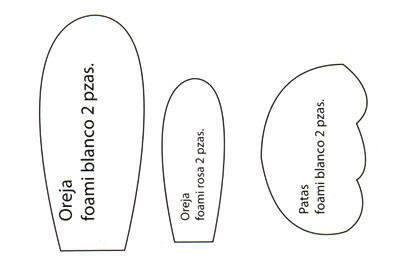 Fotocopia los moldes al tamaño indicado y transfiere al foami en el color y cantidad que se pide en cada pieza; recorta. Sombrea las piezas grises con gis café y delinea con plumón negro. Sombrea las piezas rosas con gis rosa y delinea con plumón rosa.