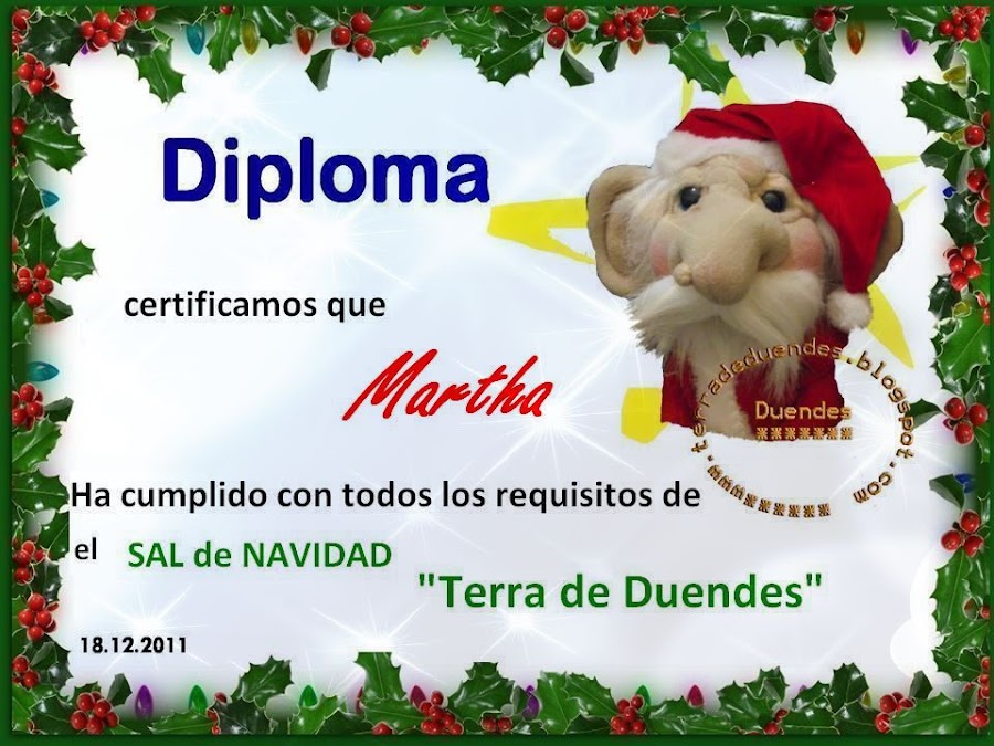 Y aquí mi diploma, me dió mucha emoción recibirlo, un detalle muy propio de ella :) Las invito para que la conozcan en su blog através de las bellas historias de sus duendes