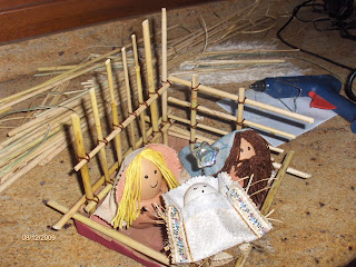 Feliz Navidad!!!!!! Como cada año, por estas fechas, decoramos nuestros hogares con motivos navideños el árbol, el belén, luces, centros de mesa, flores de pascua...... Así que aquí os muestro una pieza importante de esa decoración que es el Portal de Belén que hemos realizado en papel de periódico. Para su realización hemos usado papel de periódico, una caja de cartón , cola, pintura acrílica, fi ...