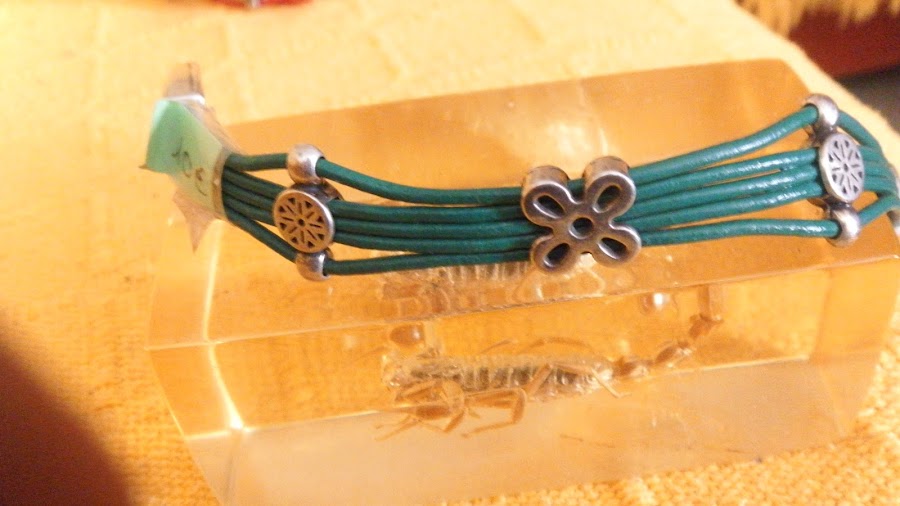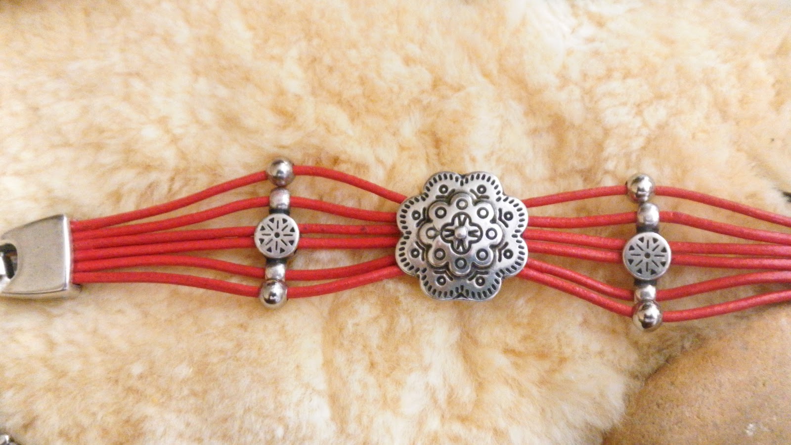 Aquí os paso imágenes de pulseras que he hecho con cordón de cuero y abalorios. Pulseras con nudo Josefina Pulsera hecha con cordón de cuero de 2mm, terminales y mosquetón en cobre. Pulsera de cuero con flores Pulsera hecha con cordón de cuero de 2mm y entrepiezas de plata tibetana en forma de flor. Pulsera de cuero y abalorios Pulsera hecha con cordón de cuero de 2mm, cadena plateada, perlas va ...