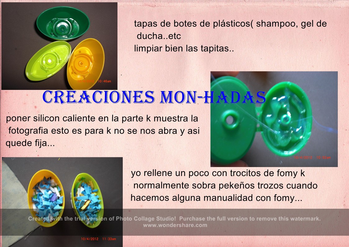 reciclando tapas de botes de shampo...(plastico HDPE)