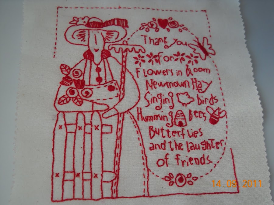 Sigo haciendo a ratitos el Sal de Redwork de Olga, ya terminé el 4º Objetivo.