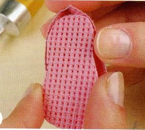 1.-Marcar y recortar sobre panabé rosa los moldes del zapatito(capellada y suela).