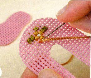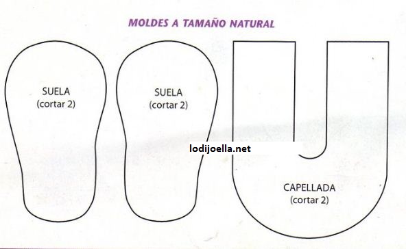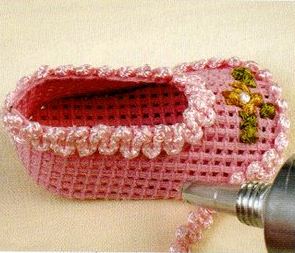 2.-Adherir entre sí ambas piezas de la suela revés con revés y ,bordar en el frente de la capellada el diseño de la flor con crochet.