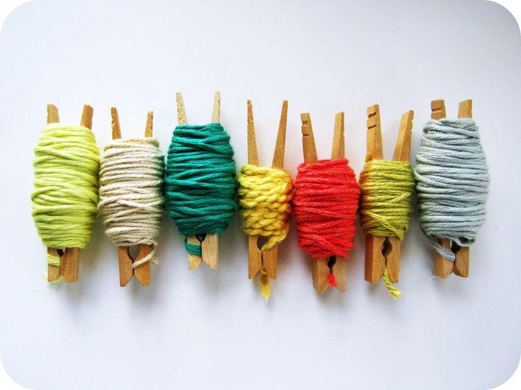 PINZAS DE MADERA: esta idea va genial cuando tenemos unos pocos metros de ovillo, así no se nos enredan.