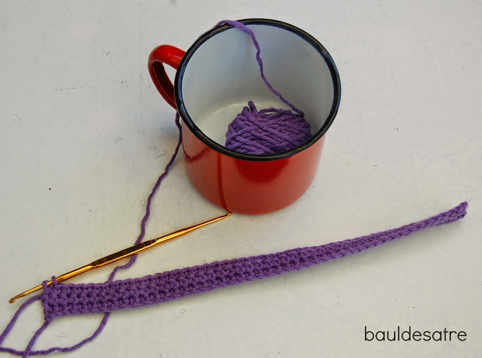 Vamos a tejer de forma lineal, para ello comenzamos haciendo una cadeneta que cubra el contorno de nuestra taza.