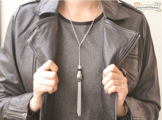 Personalmente creo que los collares largos dan un toque de elegancia y sofisticación a cualquier vestido sencillo, por eso he optado por hacer uno de este tipo del que pende una borla de cadenas.