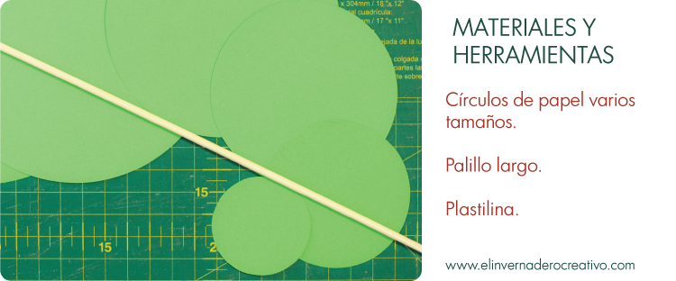 También necesitaremos un palillo de madera largo y opcionalmente plastilina. Yo la he utilizado para fijar las diferentes partes del árbol y hacer la base, pero no es necesaria.