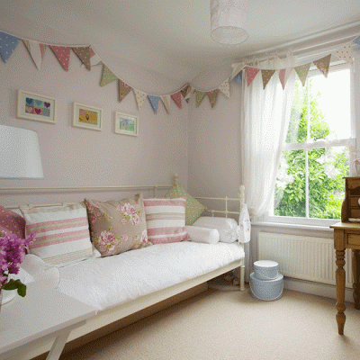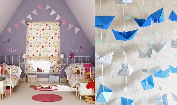 Decoramos con banderines también paredes y podemos llenar de color las cortinas.