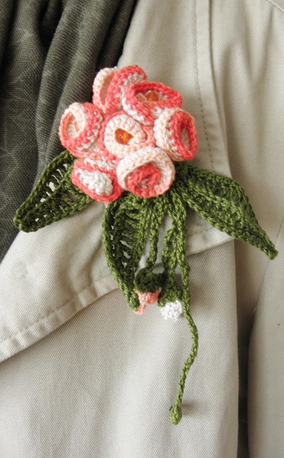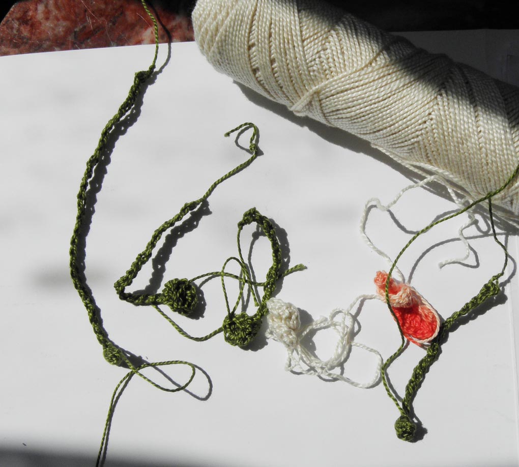Rodear el "muelle" con hilo que haga un buen contraste a punto enano y la labor se enrolla ella solita y van surgiendo las flores.