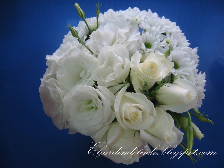 Al estilo campestre como se lleva ahora, con las flores haciendo grupos como si las acabases de recoger del campo. Les he puesto margaritas, Lisanthus y rosas blancas.